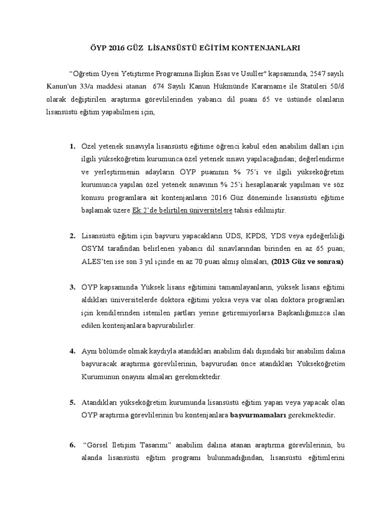 Oyp Lisansustu 2016 Guz Aciklama Ortak Doktora