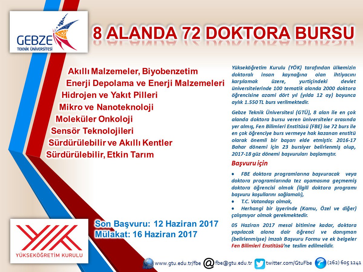 Gtu Fen Bilimleri On Twitter Gtulisansustu 8 Alanda 72 Doktora Bursu Son Basvuru Tarihi 12 Haziran 2017 Https T Co Ng1i6r0orf Https T Co Hbuljh0ueq
