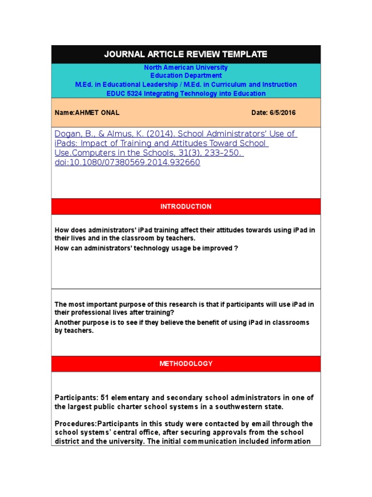 Educ 5324 Article Review By Ahmet Onal Survey Methodology Classroom