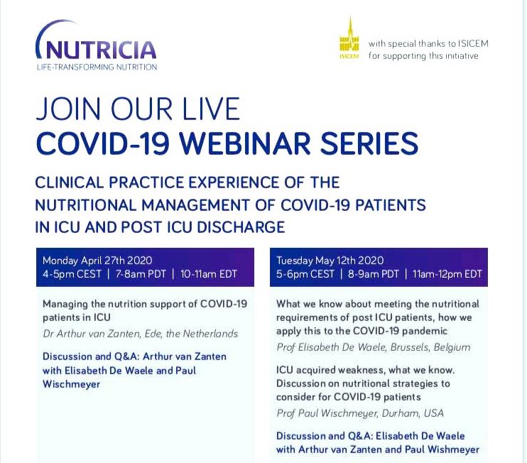 Paul Wischmeyer Md Nutritionmatters On Twitter Recording Now Online Covid19 Icu Post Icu Nutrition Care Lecture Speakers Arthurvanzanten Elisabethwaele Paul Wischmeyer Discusses Nutrition For Prone Paralysis Vasopressors Answer