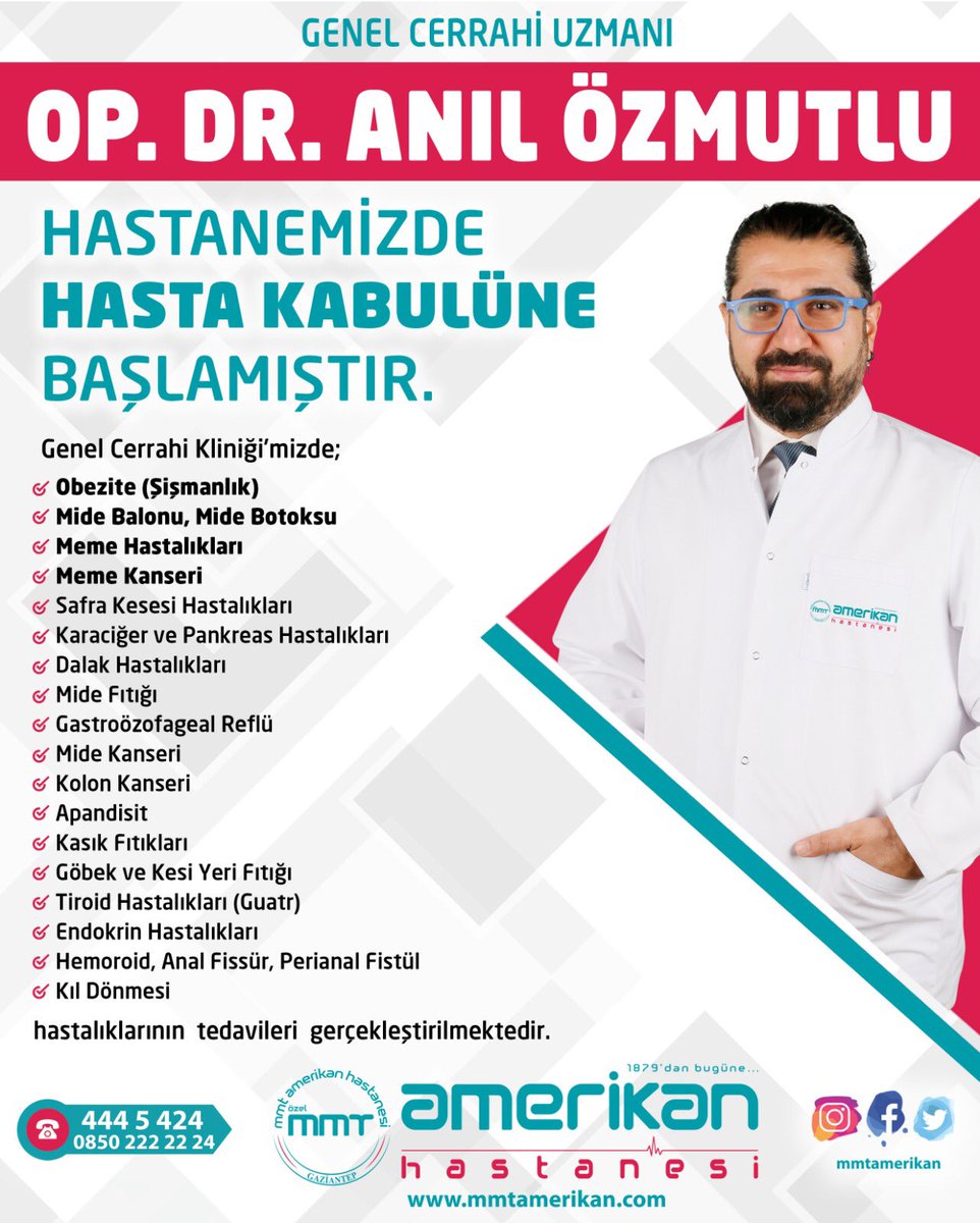 Gaziantep Ozel Mmt Amerikan Hastanesi On Twitter Genel Cerrahi Uzmani Op Dr Anil Ozmutlu Hastanemizde Hasta Kabulune Baslamistir Detayli Bilgi Ve Randevu Icin 444 5 424 0850 222 22 24 Https T Co Qdwedhxhto