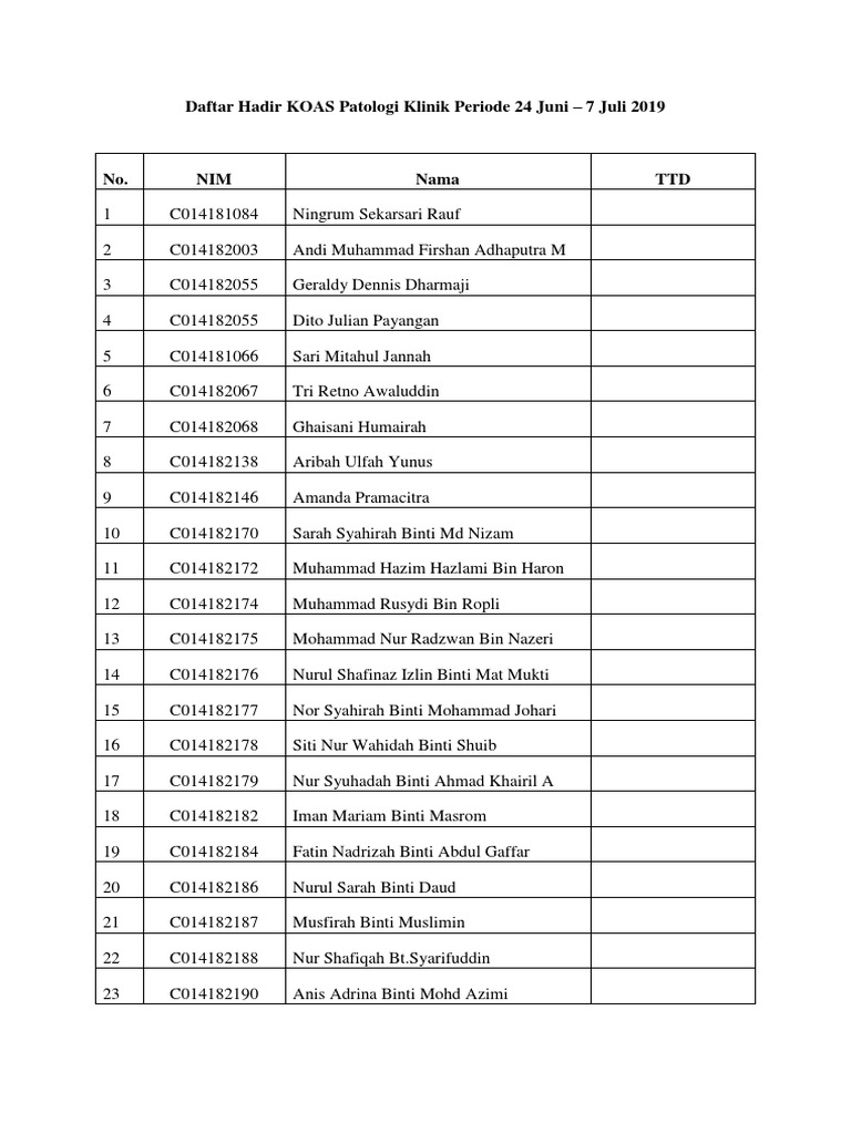 Daftar Hadir Koas Patologi Klinik Gubco Dr Abd Rahim