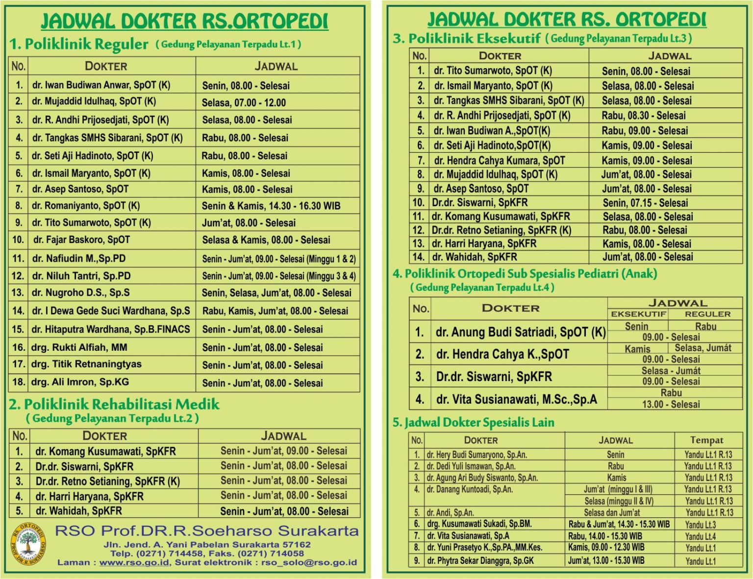 Jadwal Praktek Dokter Rs Ortopedi Prof Dr R Soeharso Surakarta Semua Spesialis
