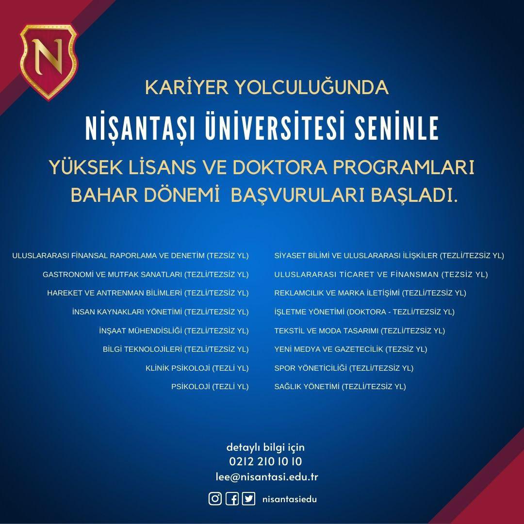 Nisantasi Universitesi Lisansustu Programlari On Twitter Lisansustu Egitim Enstitusu Bahar Yariyili Tezli Tezsiz Yuksek Lisans Ve Doktora Programi Basvurulari Baslamistir Https T Co Q5e3qpwohr Linkinden Basvuru Yapabilir Kontenjan Ve Burslar