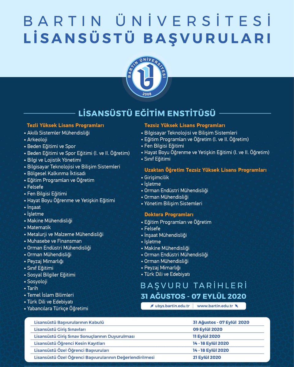 Lisansustu Basvurulari Icin Tarihler Aciklandi Felsefe Bartin Universitesi
