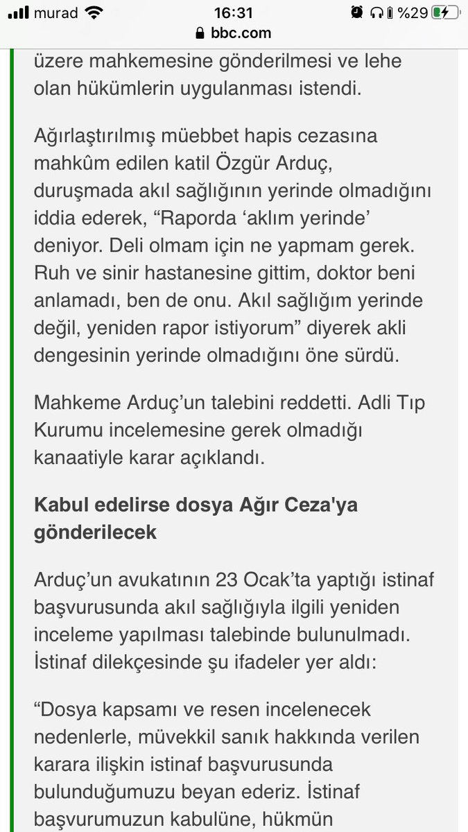 O Xrhsths Murad Cobanoglu Sto Twitter Ruh Ve Sinir Hastanesine Gittim Doktor Beni Anlamadi Ben De Onu Akil Sagligim Yerinde Degil Yeniden Rapor Istiyorum Hunharca Isledigi Cinayetten Nasil Yirtacagini Bilen Kisinin De