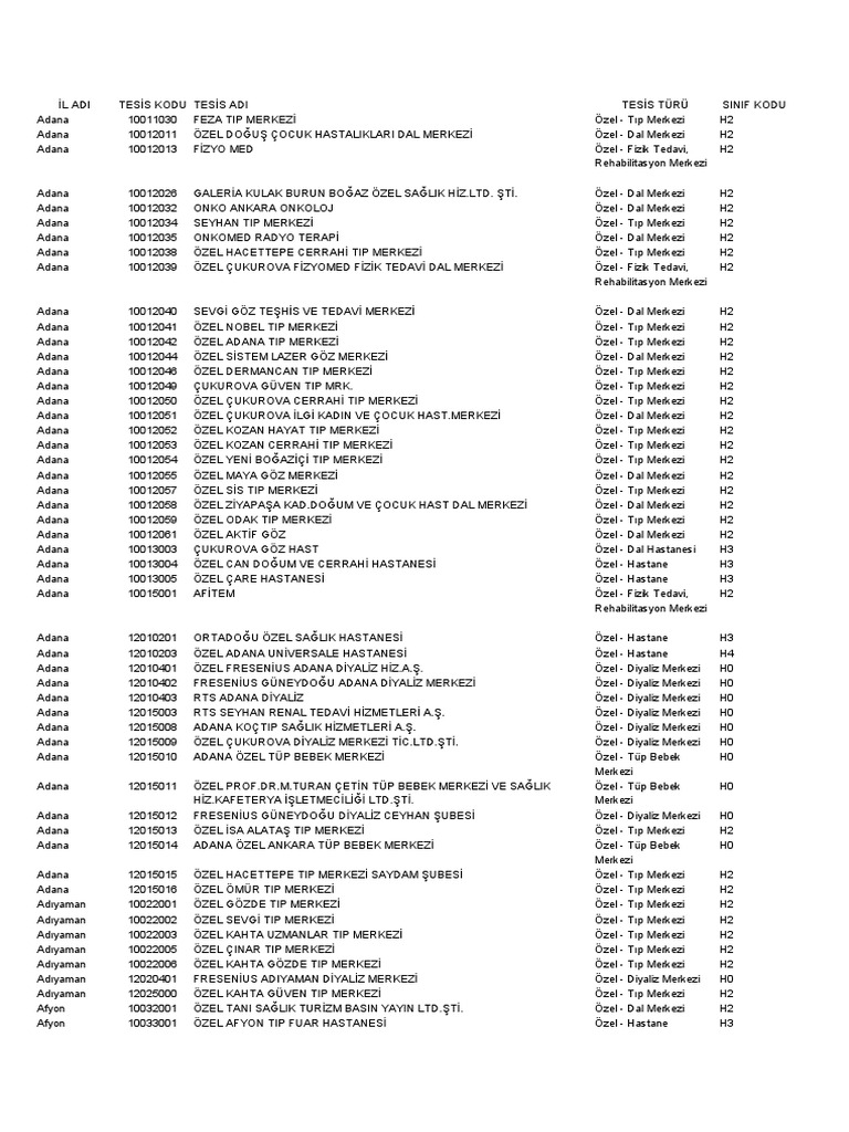 Mart 2019 Itibariyle Faal Ozel Hastane Ozel Tip Merkezi Ozel Poliklinik Ve Muesseseler