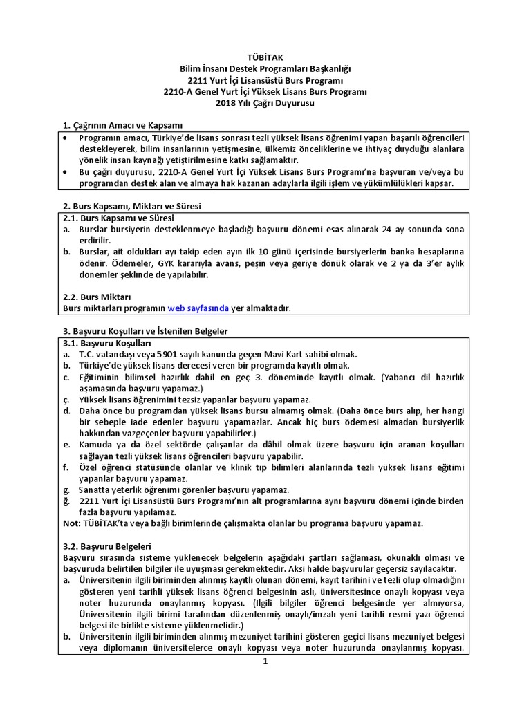 Https Www Tubitak Gov Tr Sites Default Files 283 2210 A 2018 1 Cagri Metni Pdf