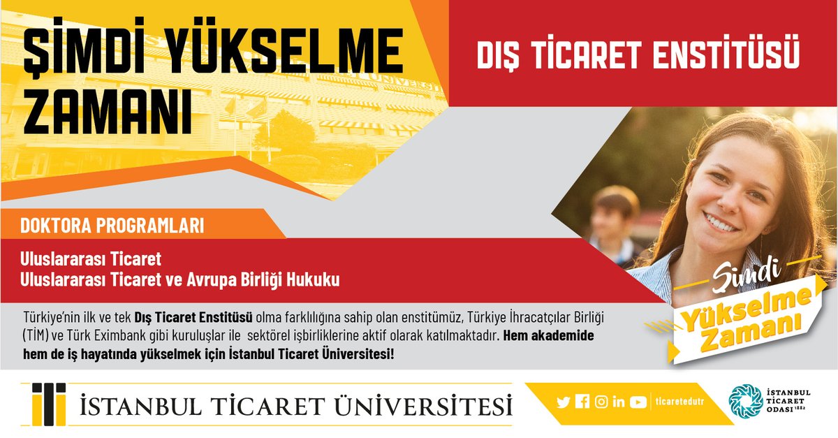 Istanbul Ticaret Universitesi On Twitter Simdi Yukselme Zamani Dis Ticaret Enstitusu Doktora Programlari Ile Is Hayatinda Yuksel Https T Co D7max7xkli Istanbulticaretuniversitesi Simdiyukselmezamani Yukseklisans Lisansustu Https T Co